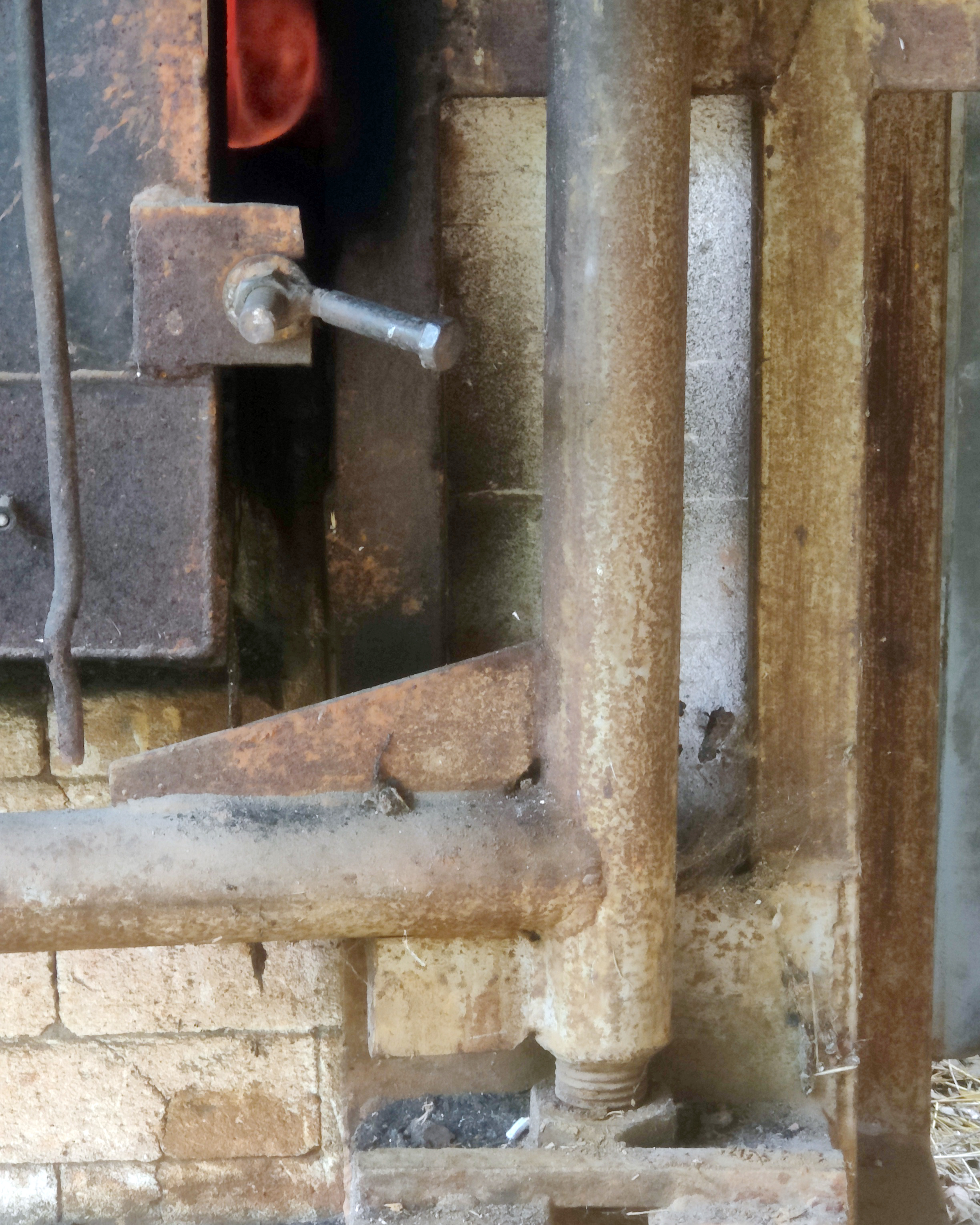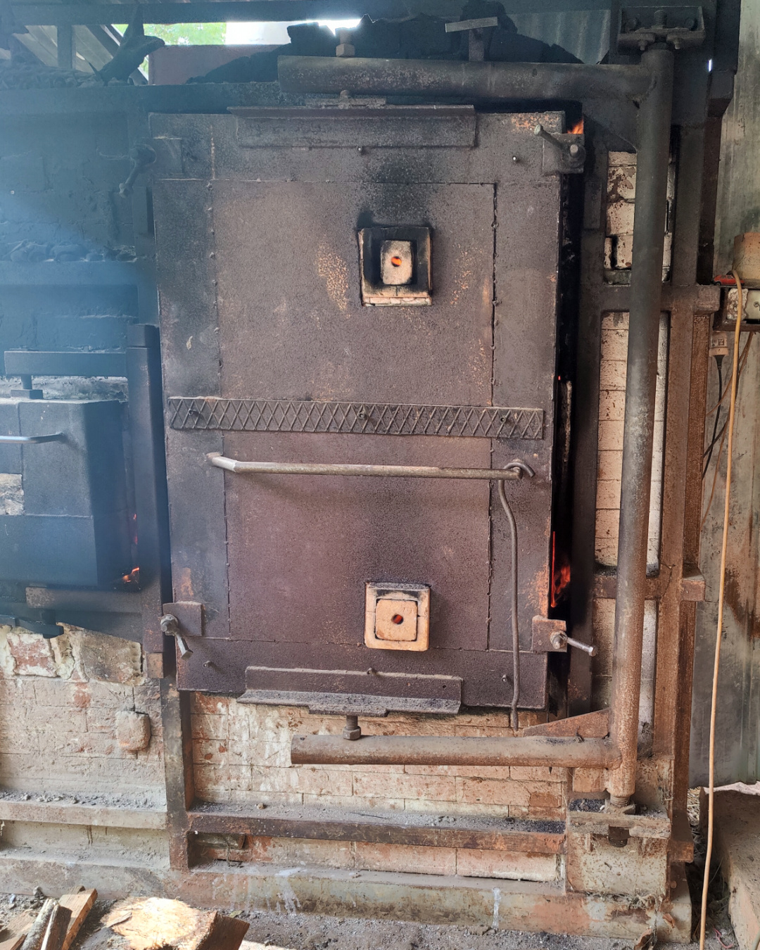 - robust hinged door for loading, with dog clamps on it and on firebox door