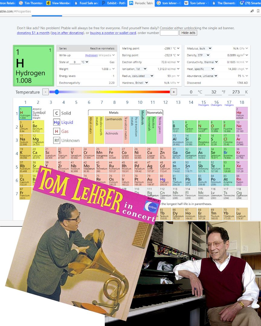 With many people nit working today, and gathering their families round for a day of eating, drinking, receiving presents and arguing (and, for those so inclined, going to religious services being held by whichever cult you prefer}, here's a bit of a break from the joys of the festive season, an aide memoire to the elements by Tom Lehrer: https://bit.ly/3GiaW7z