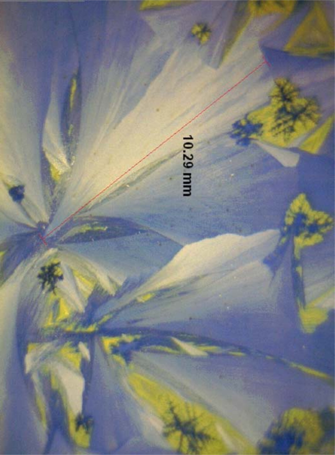 Now that we have a stable nucleii, the crystals can grow on them. Generally this happens most efficiently at a slightly higher temperature than the optimal nucleation temperature, but still below Tm.